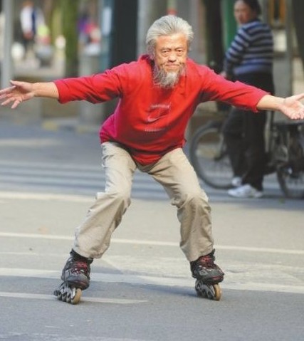70岁的高永禄,可能是年龄最大的轮滑者了。他穿上旱冰鞋,推着自行车,经常从双流踩轮滑至成都主城区。一个偶然机会,一名网友在路上遇到踩轮滑回双流的高永禄,并将其踩轮滑回双流的情景拍下来,放在网上。短时间内,这段视频被点击播放13万余次,有近600名网友在视频后留言评论。高永禄被网友称为最牛“轮滑帝”。
