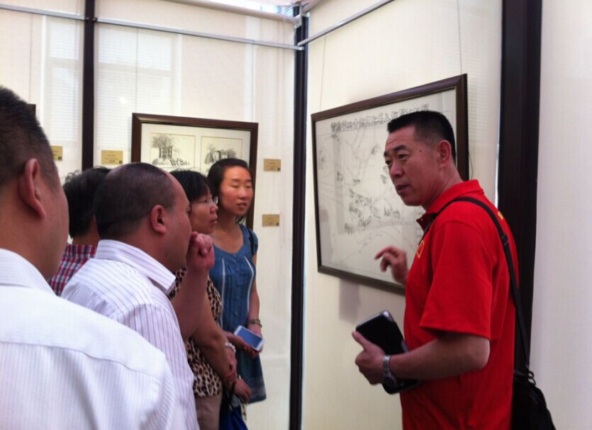 王炜绘画的原因是自己正在六中读书的儿子,儿子画画他当模特看儿子画,看着看着也勾起了自己童年时代绘画的回忆——上小学的他不厌其烦地用铅笔白描水浒一百零八将,当时自己的才华没有被家长认可,后来走了一条和机械相关的经商路。不久前他又拿起画笔,继续了童年时代的白描,不同的是,现在的工具用钢笔加上彩色铅笔。