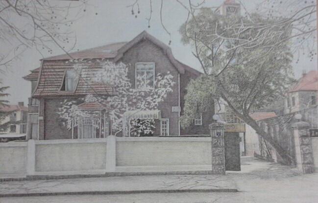 最终他选择了钢笔画这种工具简便、效果强烈的表达方式。在他的作品中,实景中沧桑和杂乱都不见了,通过艺术加工后体现出这些欧陆建筑中迷人的一个侧面,画面洋溢着人文主义的情怀,以单纯的黑白与点、线、面构成的图画中,表现的是理想中三十年代风流雅韵的名人故居和建筑所承载的对那个文艺时代的绵绵情思。